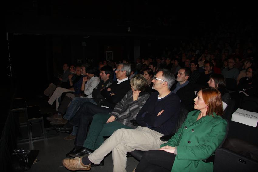 Errenteriako Udalean ordezkaritza duten alderdi politiko guztietako ordezkariekin, eta Niessen Auditoriuma lepo,