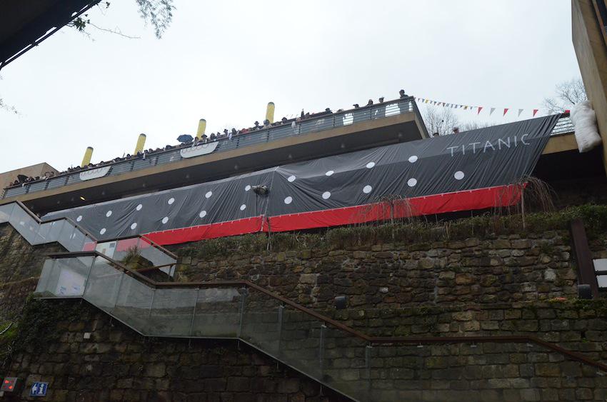 Goizeko hamaiketan Titanic ontziko bidaiariak Donibaneko Santiago plazan elkartu eta Southamptoneko kairantz abiatu dira musikaz lagundurik. Gero, bidaiariek New Yorkera joateko txartelak erosi dituzte eta ontzira igo dira. Bertan 15:30ak bitarte bazkaldu egingo dute eta gero joko aretoa zein dantza aretoa irekiko dituzte.