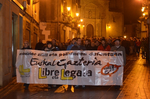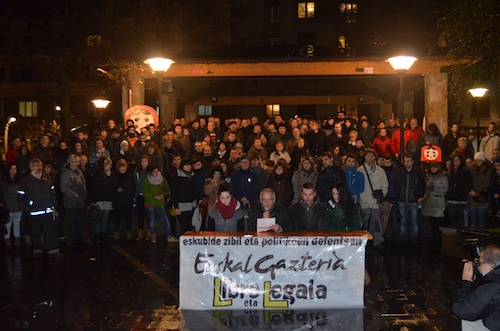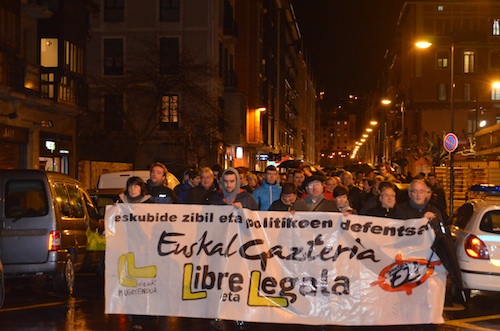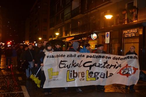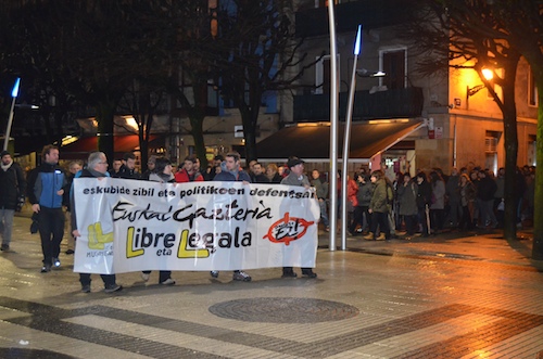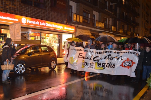 Erdialdeko kaleetan barrena ibili dira Euskal gazteria libre eta legala lelopean, eta batik bat euskal gazteriaren aldeko oihuak entzun dira. Bertan izan dira udaleko hainbat ordezkari. Manifestazioarekin bat egin dute Bilduk nahiz Ezker Anitzak. LABek ere parte hartu du.