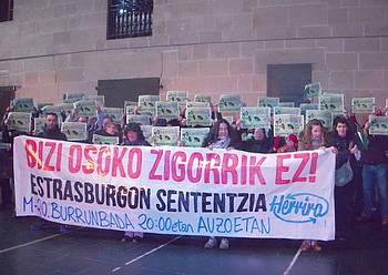 auzia berraztertuko dute. Hala ere, guztira 73 preso dira kondena luzapena aplikatuta edo aplikatzeko arriskua dutenak. Egoera honekin bukatzeko, oiartzuarrek ere kalera atera behar dutela gogorarazi du herri bilguneak: “Giza eskubideak errespetatuak izan daitezen eskatu behar dugu, eta beraz, martxoaren 20an 20:00etan auzoetan elkartuko gara. Elkarretaratzearen helburua burrunbada baten bidez Europara gure deia iristaraztea izango da”.