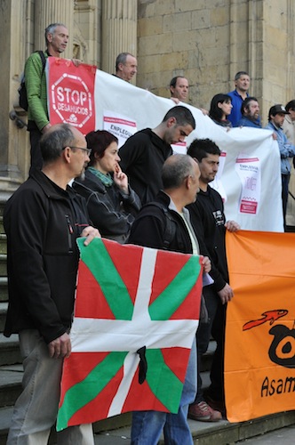 Horrez gain, atzo Bilbon kaleratze agindu bat jasotzear zegoela bere buruz beste egin gizona ere gogoratu dute protestan. “Sistema kapitalistak” erail duela adierazi dute. Horrekin lotuta, Oarso Taldeak etzi, giza katea egingo du, 18:00etan, Foru plazan, bankuen kontra.