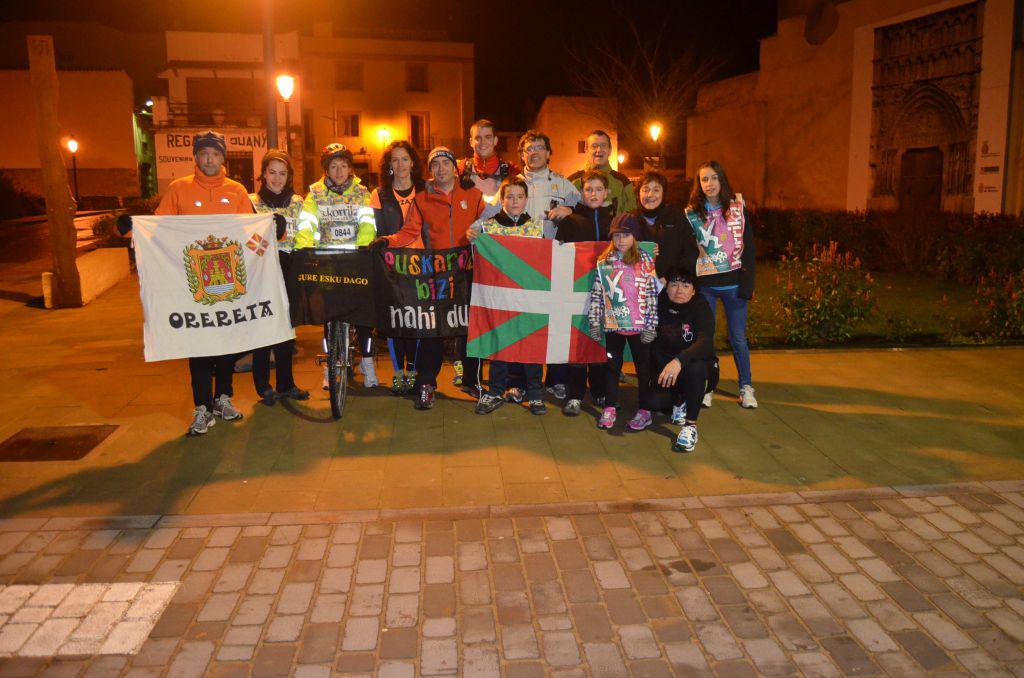 Errenteria-Oreretako Gure Esku euskalgintzako herri ekimeneko kideek Korrikarekin bat egin, eta Nafarroako Zangozan euskararen aldeko AEKren lasterketa erraldoiarekin bat egin dute bart gauean. Hain zuzen ere, Gure Eskuko zortzi kidek 03:43an hartu zuten Korrikaren lekukoa, 844. kilometroan, euskarak, elkartasunak eta konpromisoak mugarik ez dutela azaltzeko. Izan ere, bertako kilometroa erosteko herritarren artean diru bilketa egin zuten oreretarrek, eta horri esker betetzeke zegoen kilometro bat egin dute Gure Eskukoek. Ondoko bideoa eta irudiak bertakoak dira.