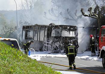 Udaltzaingoak jakinarazi duenez, zirkuitulabur bat izan da sutea eragin duena. Eta autobusa bakarrik kiskali da. Ondoko etxeko jendea atera dute, bertako zuhaitz bat eta karraskiloak erretzen hasi baitira, eta teilatu-hegala ere zertxobait desegin delako beroaren ondorioz. Baina badaezpadako neurria izan da. Ez da bestelako kalterik izan.