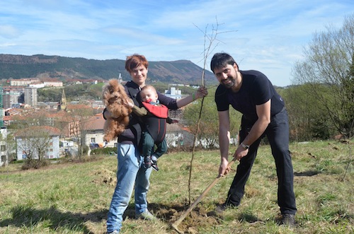 Iaz jaiotako errenteriarrek gaurtik aurrera zuhaitza izango dute Belaunaldien Basoan. Eguraldia lagun iaz haurra eduki zuten hainbat familia animatu dira Arramendira joan eta zuhaitza landatzera.