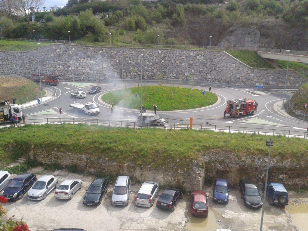 Ikusgarria izan zen, baina ez zen ezbehar pertsonalik izan. Atzo goizean auto batek su hartu zuen Molinaoko biribilgunean, Antxora Oarso kaletik sartzeko erabiltzen den gunean, hain zuzen. 11:15ak inguruan izan zen sutea, eta autoaren jabeak esandakoaren arabera, bidean zela kea ikusi zuen motorretik ateratzen, eta horregatik gelditu zen biribilgunean. Geldituta, baina, sua ateratzen hasi zen autoaren aurrealdetik, eta suhiltzaileek etorri behar izan zuten sutea amatatzera. Gertakariaren ondorioz trafikoa moztu behar izan zuten.