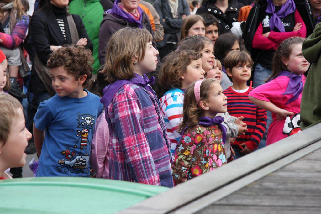 Oarsoaldeko haurrak, ordea, ez ziren mugatu Tonucciren hitzak entzutera. Herri bakoitzeko Irrien Lagunen taldekoek zertan ari diren azaldu zioten, eta haurrentzako herriak nahi dituztela adierazi zioten, modu praktikoan gainera: lantzen ari diren egitasmoen berri eman zioten hitzez, marrazkiekin, eta ipuinekin. Arratsalde pasa bukatzeko sardina jatea egin zuten Donibaneko Santiago plazan.