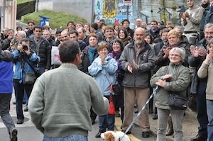 Txarli Garcia Herrira mugimenduko ordezkariak hartu du hitza. Herrira-ren izenean, ongietorria eman dio, eta bere senideengana ere zuzendu da, Zigandak espetxean egin dituen 24 urte horietan “hor egoteagatik”. Gaur eguna “beste gaztañotar bat etxeratzeko” baliatu behar dela esan du, Aitzol Gogorzarengatik. “Euskal Herriaren ireki den aro berri honetan ezinbestekoa da giza eskubide guztiak errespetatuak izatea, eta bereziki, euskal preso politikoei aplikatzen zaizkien salbuespen neurriekin bukatzea”, nabarmendu du Garciak.