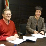 Jose Luis de la Cuesta eta Amaia Agirregabiria, akordioa sinatzen