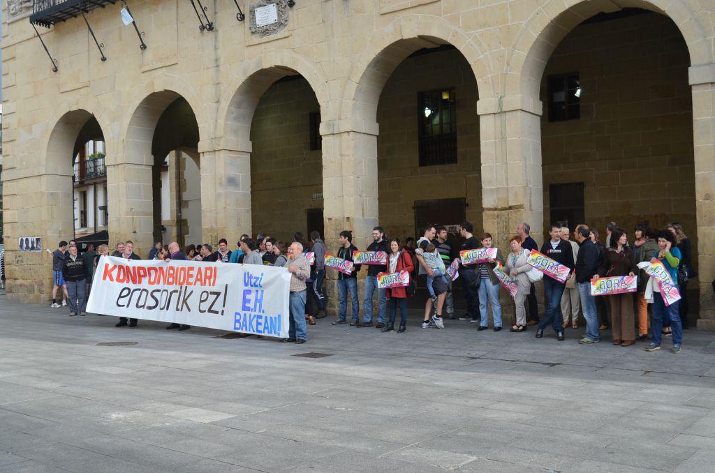 Herrikoen auzia salatzeko. Elkarretaratzea bukatuta, Oiartzungo Sortuko bozeramaileen ondotik, Girizia elkarteak hartu zuen hitza. Oiartzungo elkarte hori auzi horretan dago eta orain hamar urte pasatakoa gogora ekarri zuten.