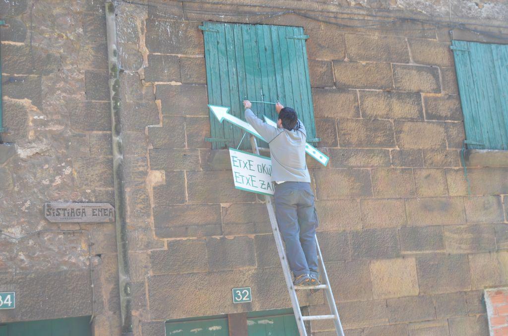 Etxe okupatua, etxe zaindua dioen ikur modukoa jarri dute. Bukatzeko Txerrimuñon elkartu dira guztiak bertan prest zituzten pintxoak jateko.