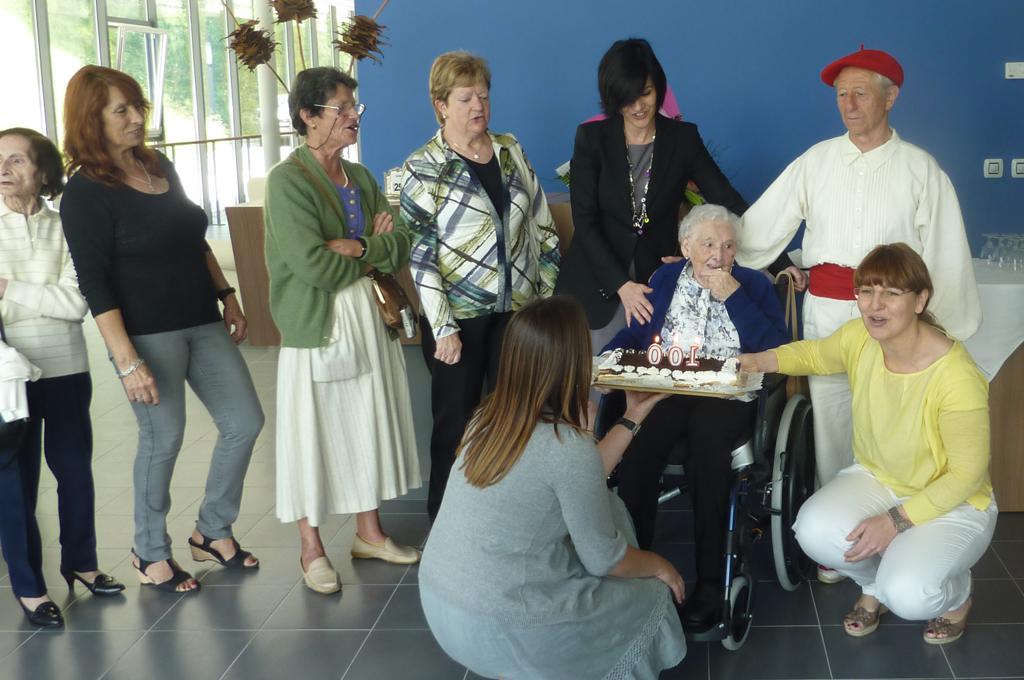 Manuela Garmendia hondarribiarrak 100 urte bete zituen atzo, asteartearekin. Amutekoa da bera eta etxe ondoan bizi da, Betharram egoitzan. Pozik ospatu du urtebetetzea, bere ahizpa Antoniaren, lagunen eta Betharrameko bizilagunen ondoan.