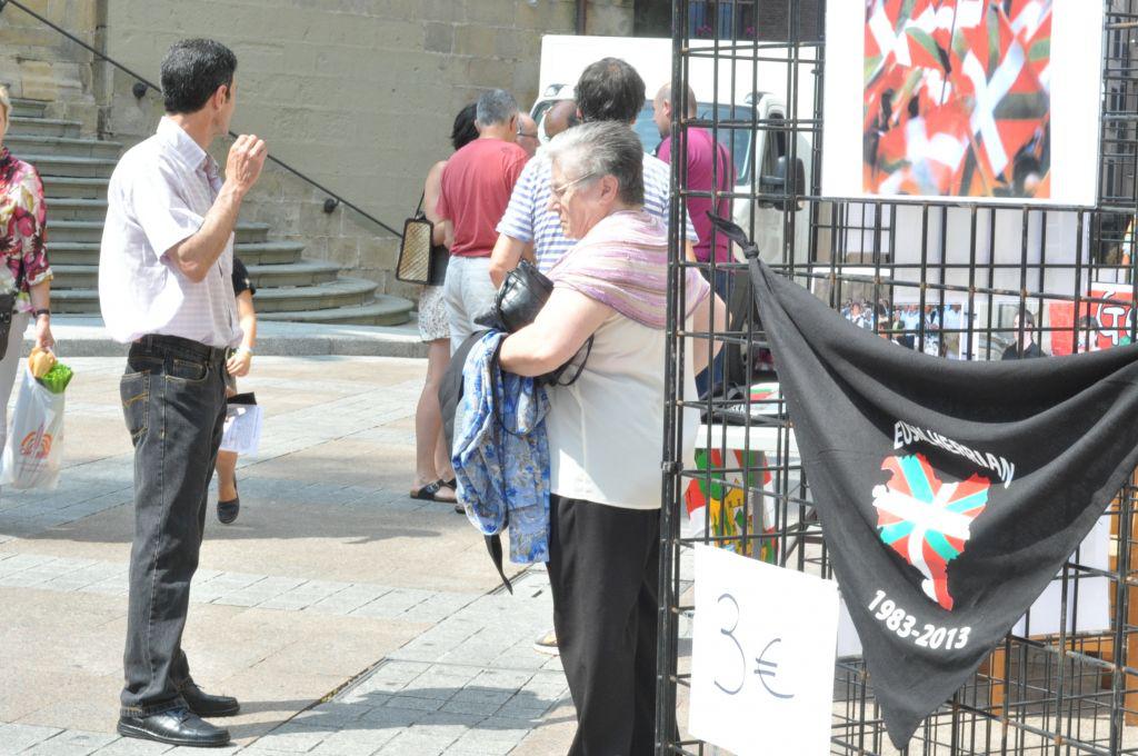 Erakusketarekin batera, zapiak eta ikurrinak erosteko aukera izango da. Zapiak 3 euroan daude salgai. Urteurrenarekin bat eginez, madalenetatik hasita “ikurrina etxeen begi bistan” jartzeko eskatu diete.
