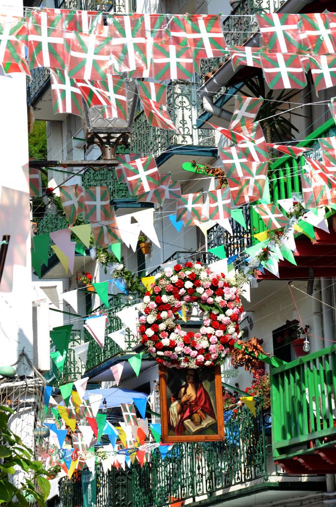 Festa handiagoak badira herrian, baina festa eremua hainbeste eta hain ondo apaintzen duen jai batzorderik ez. Gaur goizean eskailera mekanikoak jaisten ari ziren bisitariek harrituta begiratzen zioten kaleko bi etxe lerroak lotzen dituen bandera multzoari. Erdian, Maria Magdalenaren koadroa, karrikako eta bertako festetan parte hartzen dutenen zaindaria.
