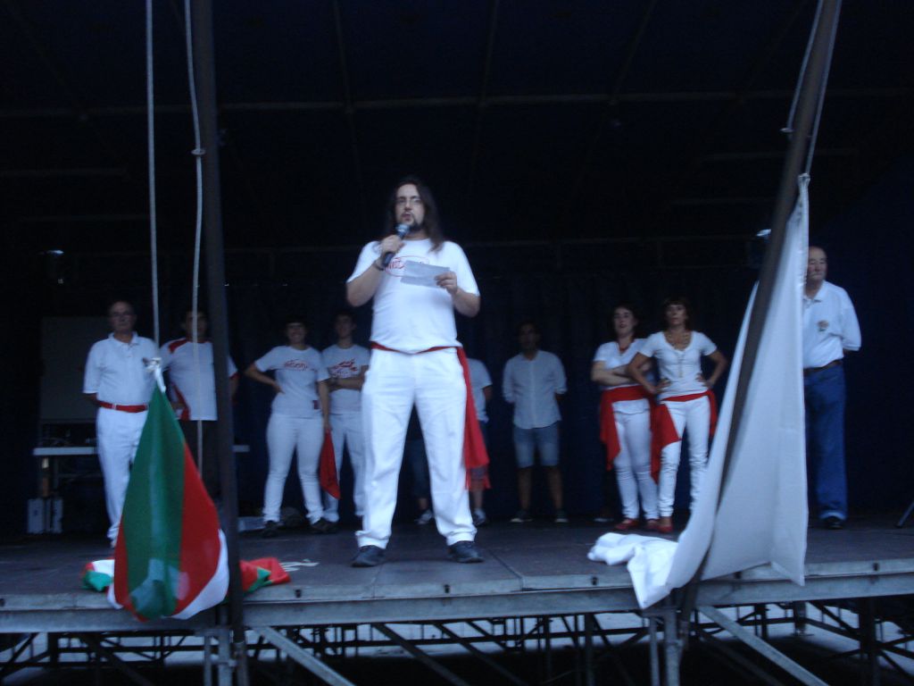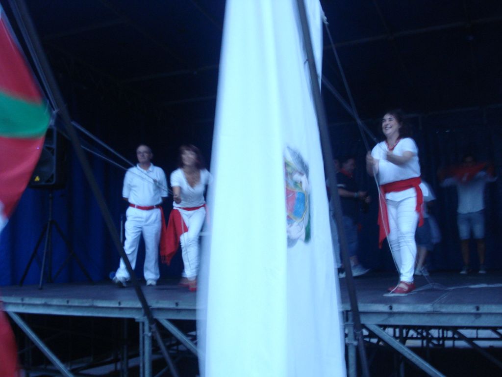 Jai Batzordeko kideak ikurrina eta Antxoko bandera altxatzen