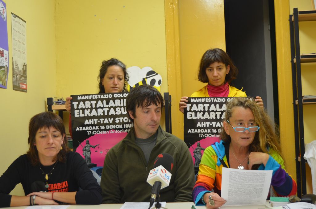 Gaur egin dute agerraldia AHTaren kontrakoek Irunen