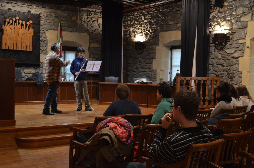 Gaur goizean Ibargain Musika Eskolako harpa eta flauta ikasleek klase berezia jaso dute. Gisa horretako lehen masterclassa egin dute udaletxeko areto nagusian, musika eskolako irakasle Iñaki Gurrutxagak bultzatuta. Jesus Silguero flauta jolearen eta Ursula Segarra harpa jolearen gidaritzapean gauza asko ikasi dituzte ikasleek. Gero, bi horien kontzertua entzuteko aukera izan dute.
