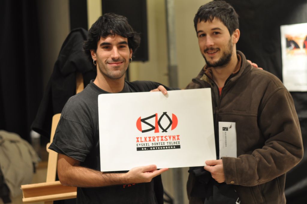 Gurutz Oiartzabal antxotarrarena da Alkartasuna Euskal Dantza taldearen 50. urteurrenaren irudia. Dantzarien galtzerdietako sokekin osatu du antxotarrak 50 zenbakia, dantza taldearen koloreekin, beltza, gorria eta zuria. Hortaz, 400 euroko saria eraman du bere diseinuagatik Oiartzabalek, eta atzoko saria emateko agerraldian, Antxoko dantzarien elastikoa ere jaso zuen, pozik, dantza taldeko kide Eneko Lillyren eskutik.