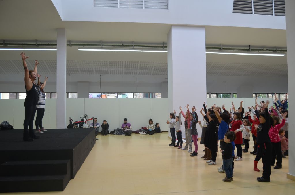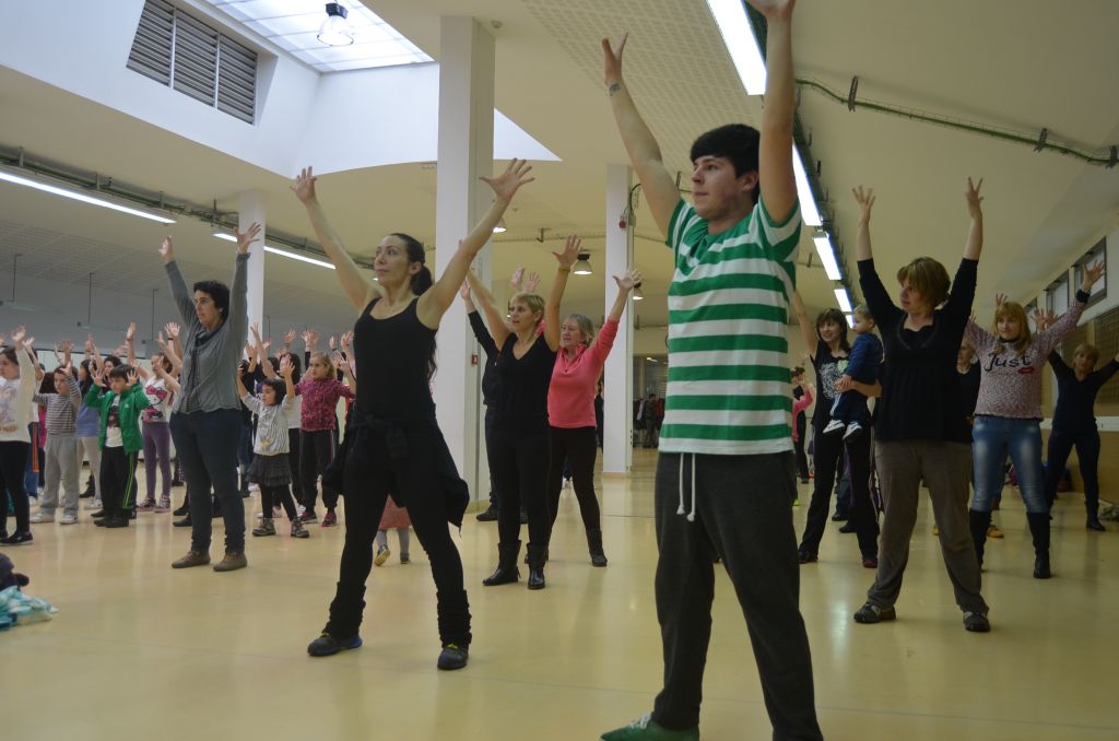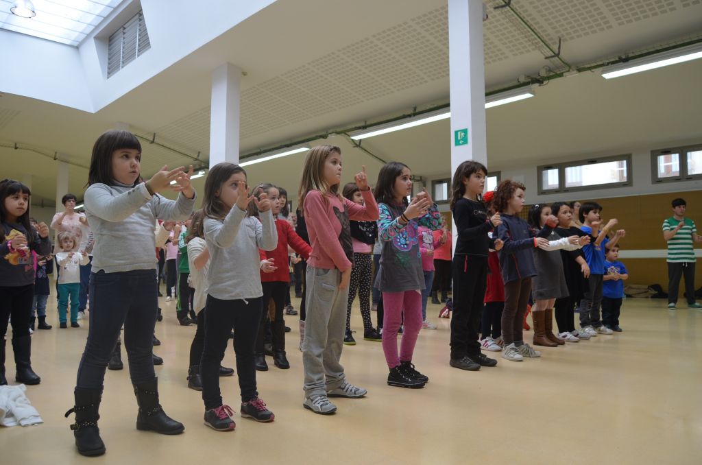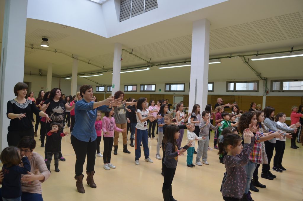 Otsailaren 7an egingo duten Eskuetan flashmoba ikasten aritu dira gaur goizean, Merkatuzarren, herriko zenbait haur, gazte eta guraso. Eureka taldeko Oliverrek eman dizkie argibideak, eta pixkanaka kanta guztia osatzen joan dira. Ia ia kontrolpean daukate.