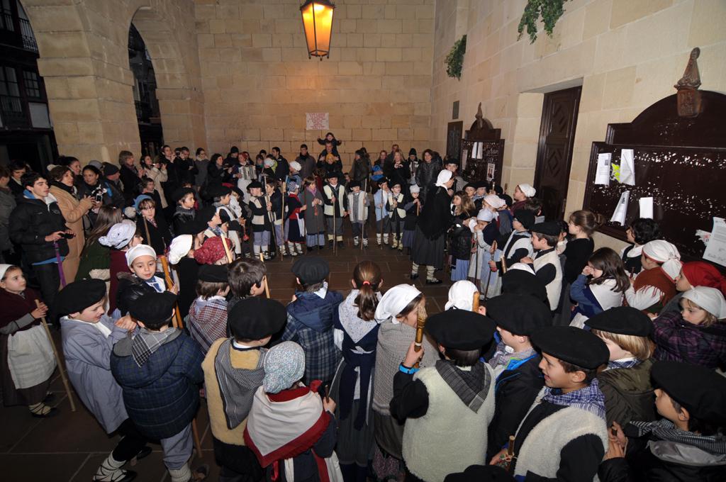 http://www.youtube.com/watch?v=EF5dhGc0HaQ&list=UUEIzgOdeRanRBrYIDGVV_0A&feature=share Euskal Herriko leku gehienetan bezala, Santa Ageda bezperan kantuan eta eskean irten ziren Hondarribian. Goizean ikastetxeetako umeak aritu ziren kalean eta eskolatik eskolara abesten. Arratsaldean Musika Eskolako haurrek (argazkietan) Alde Zaharreko eta Portuko kale eta plazak girotu zituzten. Eguzkia ezkutatu zenean nagusien txanda izan zen.