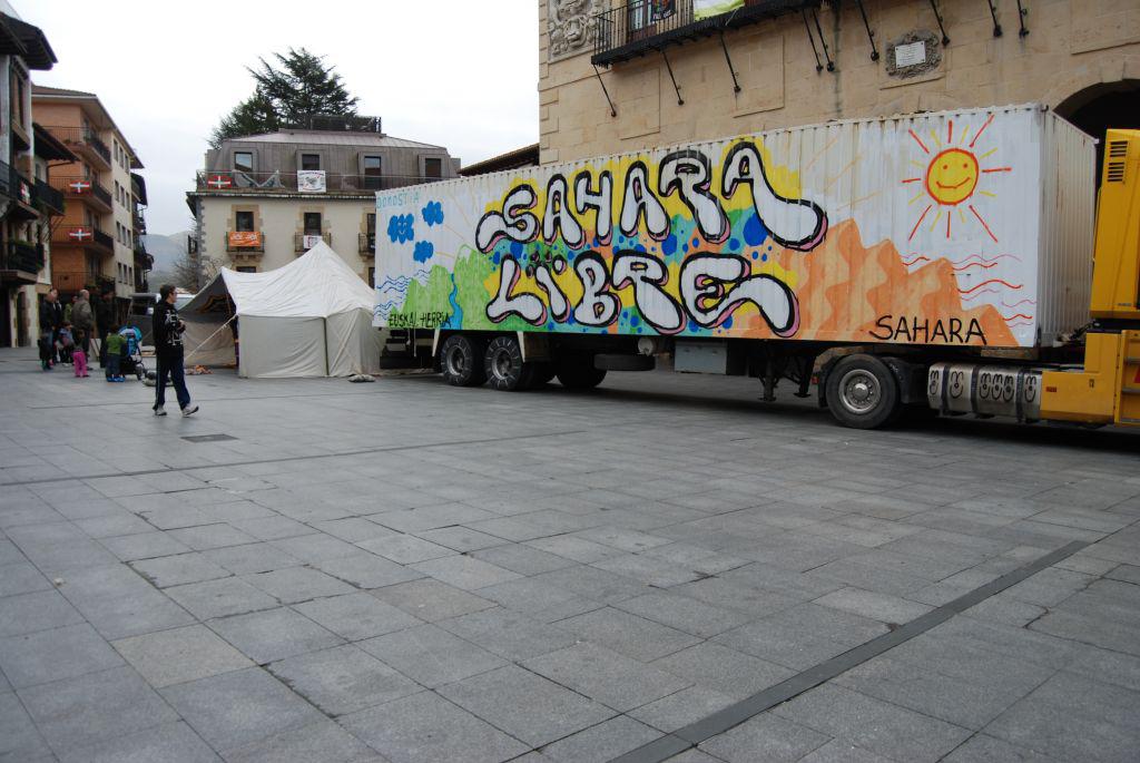 El-Watan elkarteak eskerrak eman nahi dizkie oiartzuarrei eta Doneztebe plazan Saharara bidaltzeko janariz betetako kamioia jarri dute ikusgai. Horrez gain, jaima bat ere jarri dute kamioiaren ondoan.