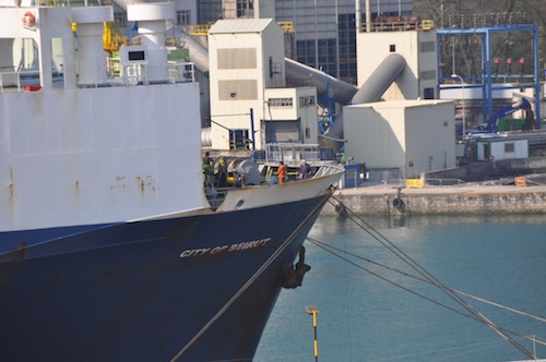 14:30ak inguruan porturatu da Pasaian City of Beirut ontzia, eta orain Lezoko kaian dago. 174 metro ditu luzeeran, autoak garraiatu ohi dituzten UECCko ontziekin alderatuta, 34 metro luze handiagoa. Kantabriatik heldu da ontzia.