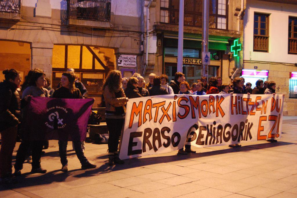 Datuak ere gogorarazi dituzte. Euskal Herrian izandako lehen hilketa izan bada ere, Espainiako Estatuan hamahiru emakume hil dituztela gogoratu dute. “Horiek dira ezagutzen ditugun datuak. Frantziako Estatuak matxismoak eraildako emakumeekin kontaketa berezirik ez du egiten, horrelakorik ez dela sinistarazteko”.