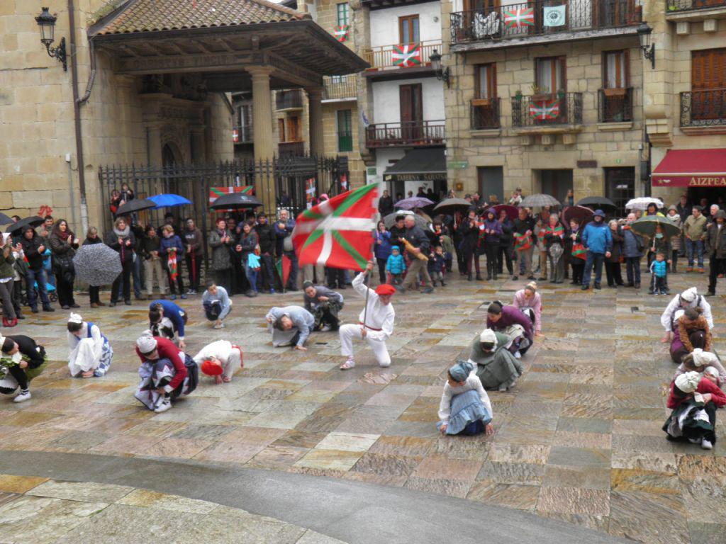 Kalejira Gurutze Santuaren plazan bukatu da. Bertan ekitaldia egin dute, Hitza hartu dutenek esan dute herriko elkarte eta talde gehienek bat egin dutela ikurrinaren aldeko manifestuarekin, eta horiek denak zerrendatu dituzte (bideoan). Gehiago bildu nahi dituzte. Horrez gain, inposaketarik ez dutela onartzen esan, eta herriko etxeetako balkoietan ikurrina jartzera animatu dituzte lezoarrak.