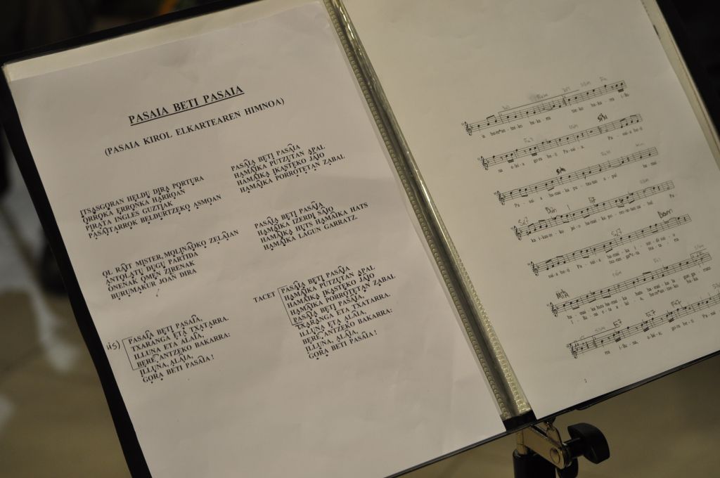 Atzo elkartu ziren Antxoko kantu jirako kideak Azokan, zeregin batekin: Pasaia Kirol Elkartearen ereserkia euskaraz grabatu nahi dute, eta hori entseatzeko lanean dabiltza. Atzo, kantu jiraren zuzendariaren esanetara, abestiaren azken zertzeladak entseatzen ibili ziren hasieran abeslariak, grabazio batekin. Ondoren dena zuzenduko duen Mikel Mate joan zen entsegura; hark abeslariak nahiz musikariak zuzenduko ditu. Ereserki horren letra Koldo Izagirrek egin du.