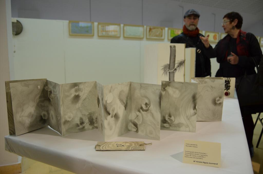 Bi astez, artista liburu eta arte koadernaketari tokia egingo diote Merkatuzarren, eta atzo topaketa horiek inauguratu zituzten. Horrenbestez, apirilaren 6ra bitartean, bi diziplina horiek ezagutu ahal izango da erakusketa nahiz tailerren bitartez.