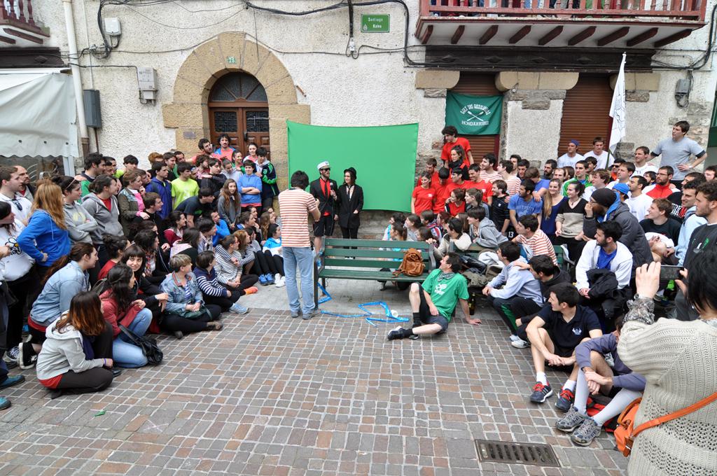 Dena aurrez prestatzeko asmoz, 09:15ean gelditu ziren kamerak, Madalen plazako ikuspegi eta angelu hoberenak aukeratzeko asmoz. Hamarrak puntuan zirela, pregoilaria eta bere kideak Santiago kaletik sartu ziren, Olinpiadak TBko lankideek croissant-a oraindik ahoan zutela.