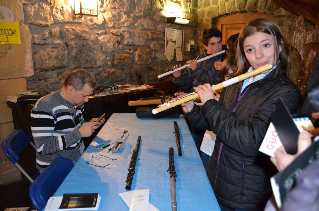 Flautak probatu eta ersoteko aukera ere izan dute udaletxeraino hurbildu direnak, izan ere udaletxe sarreran postua zuten jarria.