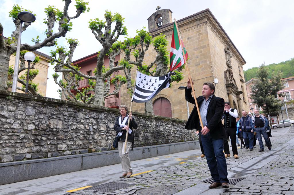 Kanpandorreko erlojuak ordubata seinalatu duenean abiatu da bretoien taldea bibliotekatik udaletxe aldera. Aurretik, bi kide Bretainiako eta Euskal Herriko banderak elkartuta, eta atzetik, musikariak, Karaezeko Udaleko ordezkariak eta ordezkaritza osatzen duten beste pertsonak. Udaletxean zain zituzten Aiora Perez de San Roman Oiartzungo alkatea eta Asier Legorburu Kultura zinegotzia, baita senidetza batzordeko hainbat kide, eta beste herritar batzuk.