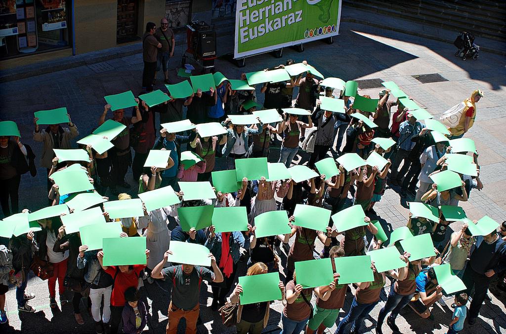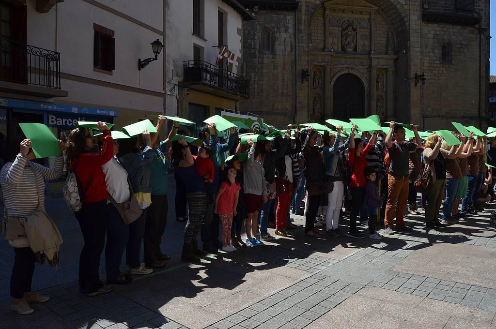 Eguerdian mosaiko erraldoia egin dute Herriko Plazan: hainbat herritarrek EHEren logoa den karakola berdea irudikatu dute. Modu horretan, espaloitik ez direla jaitsiko argi utzi nahi izan dute, euskaraz bizi nahi dutela aldarrikatuz. Espaloiaren metafora argitzeko Ferran Suayk idatzitako
