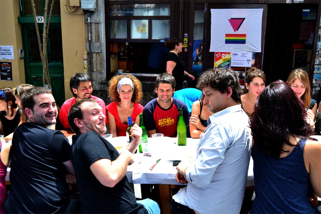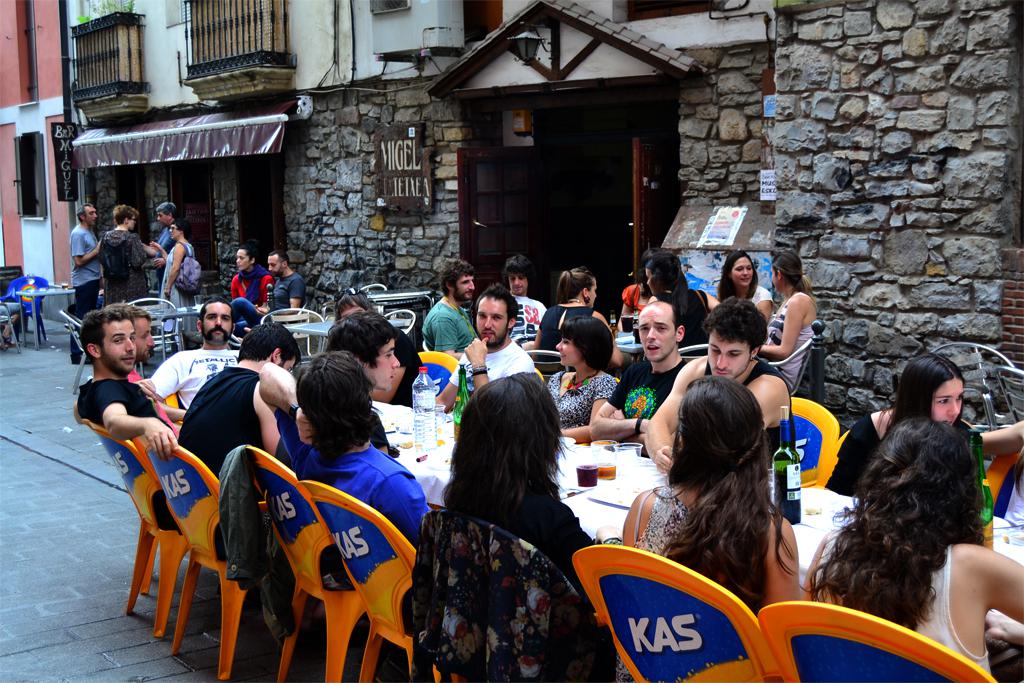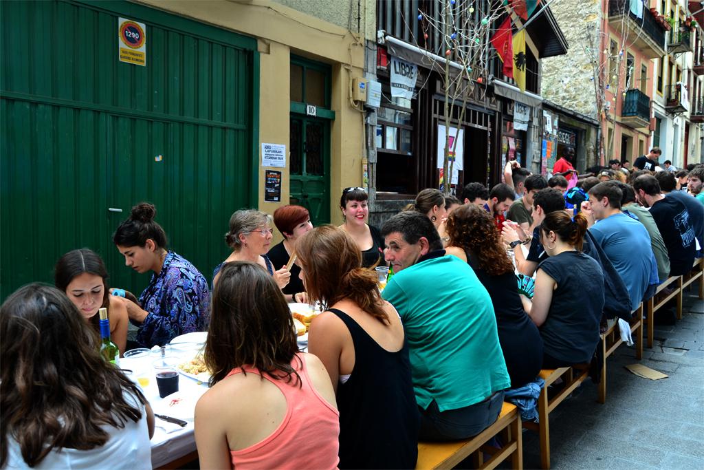 Txosnen aldeko bazkaria egiten ari dira Peña kalean