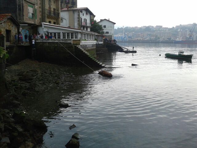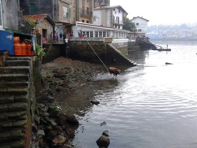 Baxu zegoen marea, eta itsasoan igeri egiten tarte batez egon arren, itsasoak hartua ez zuen ertzeko bidea hartuarazi diote zezenari, aurrerago, Camara jatetxearen ondoko eskailerak igo —zezenaren arduradunaren nahiz herritarren laguntza behar izan du zezenak berriz ere lurra hartzeko—. Behin Donibane kalean berriz ere egonda, zezenak sokamuturrarekin jarraitu du, Santiago plazara joanaz.