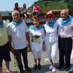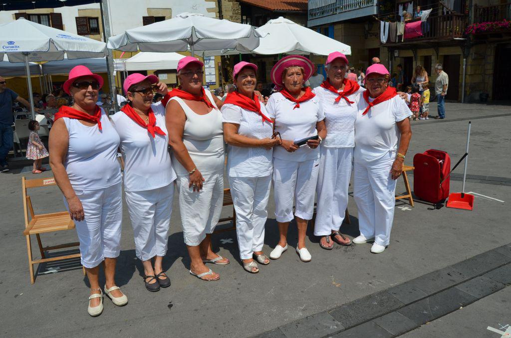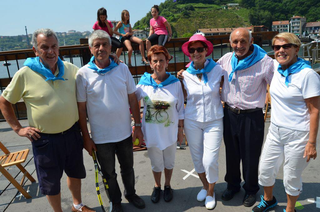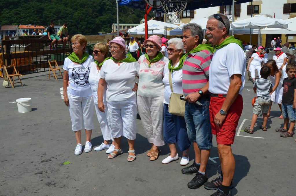 Horren ondoren, adinekoek izerdia bota dute. Jokoak egin dituzte taldeka eta auzoka —bai, Donibanen txikia izan arren, auzoak ere badaude—. Talde bakoitza bere koloreko zapiarekin hasi da saskibaloira, arrautz jokora, edo tenis antzekora jokatzen. A zer sasoia duten Donibaneko adinekoek, alajaina!