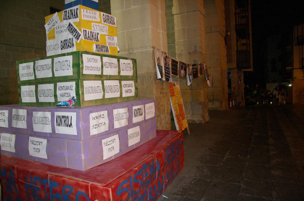 Emakumeen kontrako indarkeria, ikusten dena eta ikusezina, salatu dute herrietako plazetan