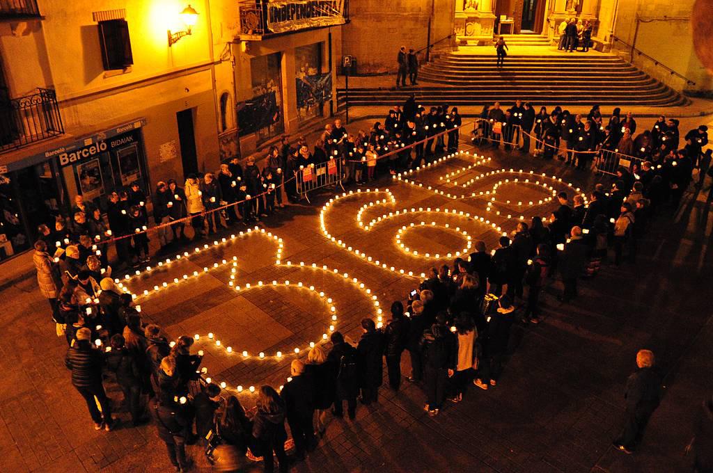 Hamarnaka lagun bildu da Herriko Plazan, kandelek argiztatutako 365 handi baten jiran. Foru Plazatik ateratako kalejiran iritsi dira bertara. Euskararen Egunean, euskarak egunerokoa izan behar duela aldarrikatu dute horrela. Bertsolariak ere izan dira ekitaldian.