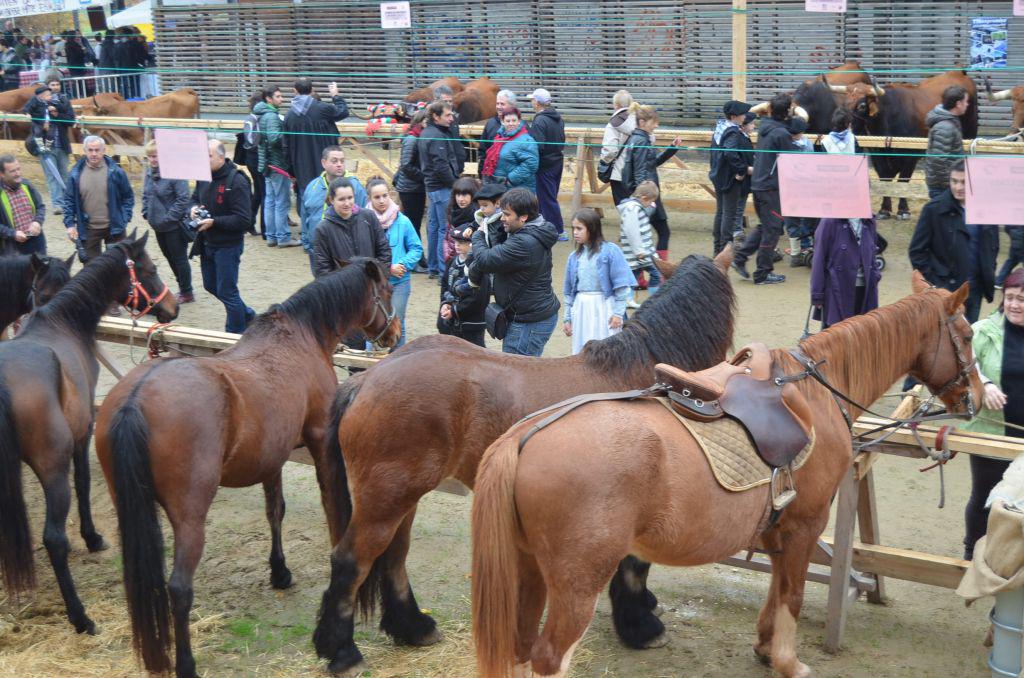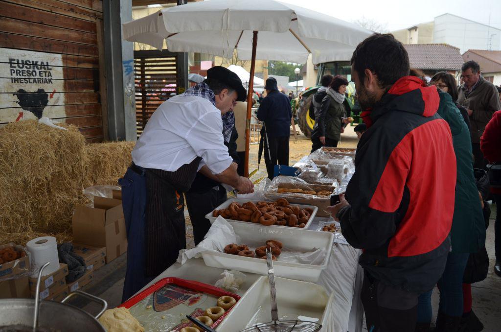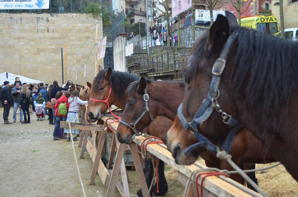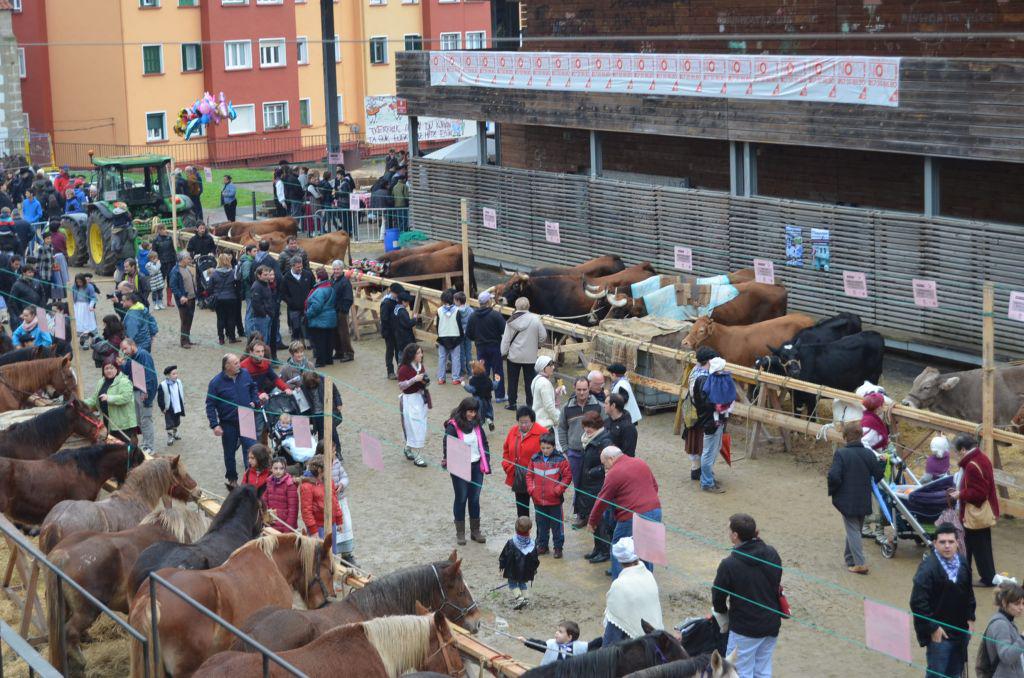 Ganadu feria handia egiten ari dira Madalensoro pilotalekuaren atarian, eta barruan, azoka. Herriko kaleetan giro ederra suma daiteke.