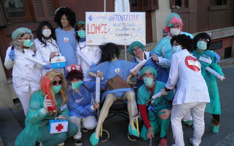Haurtzaro Ikastolak desfile koloretsua egin du herritik; LOMCEren kontrako txertoak jarri dituzte hainbat medikuk