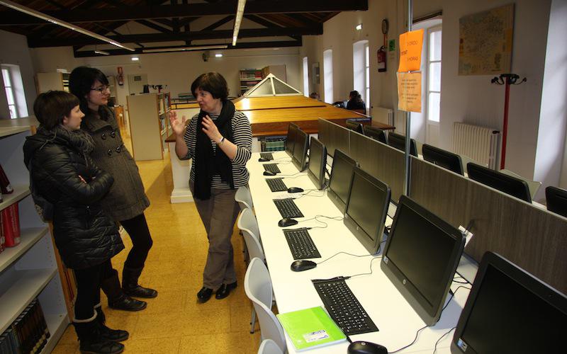 Mari Jose Pascual liburuzainak esan du udal liburutegiak ez duela oraindik biztanleko ordenagailu ratioa betetzen, “baina hurbiltzen ari gara”. Goiko solairuan jarri dituzte ordenagailuak, toki onena izateaz gain, hamasei horiek sartzeko beste gunerik ez dagoelako. Hainbat ezaugarri dituzte ordenagailu horiek: teklatuak ez du soinurik egiten; soinua entzun nahi duenak, kaskoak eraman beharko ditu; eta erabiltzaile bakoitzak eguneko hiru orduz erabili dezake Internet, besteak beste.