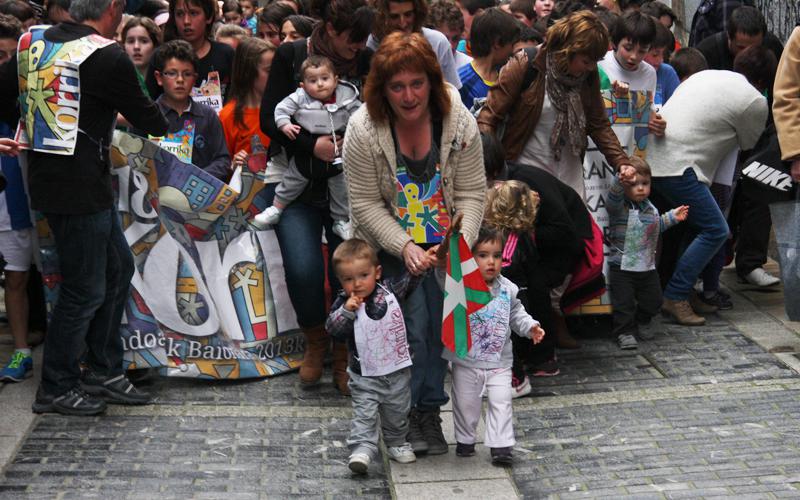 Gaztetxoek lekukoak ohorez eta harro eraman dituzte herriko kaleetatik