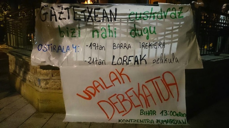 Atzo 'Loreak' filma proiektatzekoak ziren, baina udaltzainek jakinarazi zietenez ezingo zuten egin. "Dekretu inposatzaile" bat aurkeztu zietela salatu dute.