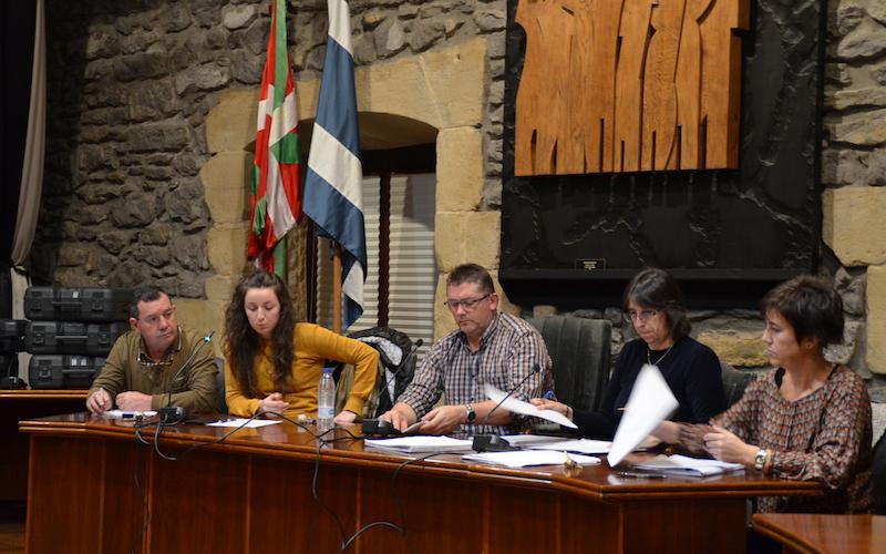 Eneritz Arbelaitzek (argazkian, bigarrena ezkerretik) San Markos Mankomunitatearen aurrekontuen kontra bozkatu dutela jakinarazi zuen