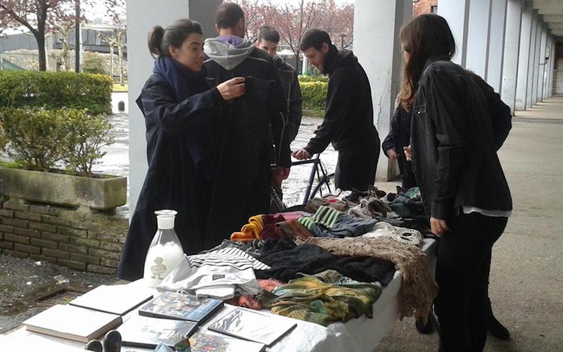 Eguraldi txarrak behartuta, tokiz aldatu dute gaurko Askalitz gazte taldeak Proisaren laguntzaz antolatutako azoka. Portuko etxeetako arkupeen babespean ari dira gaur goizean trukean sanpedrotarrak.