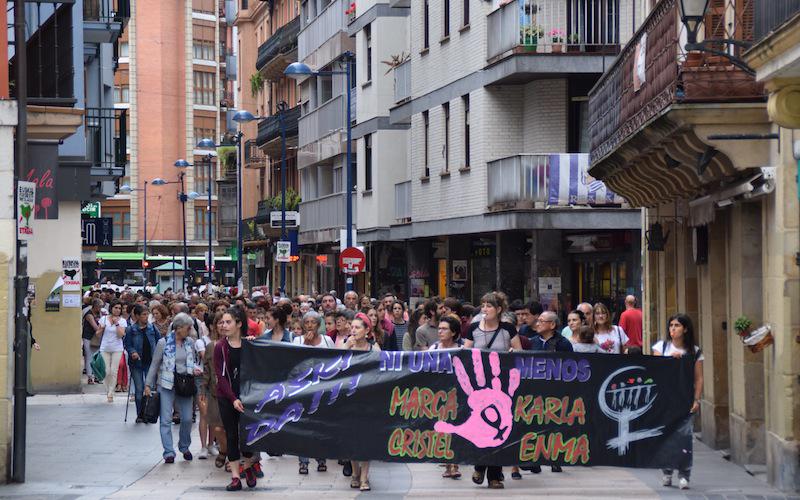 Pankartan, indarkeria matxistal hil dituen azken lau emakumeen izenak: Marga, Karla, Cristel eta Enma. Haiek gogoan hasi dute protesta txilibitu hotsen artean eta indarkeria matxistaren aurkako oihu artean.