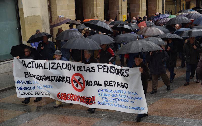 Pentsio duinak aldarrikatu dituzte gaurko mobilizazioan, eta gogora ekarri dute Europako Karta Sozialaren arabera, gutxieneko pentsioa 1.080 eurokoa beharko lukeela izan.