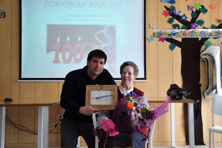Hilaren 17an beteko ditu Ana Campo Mazuelasek 100 urte, baina gaur ospatu du Sanmarkosene egoitzan 100. urtemuga festa. Familia zein lagunek inguratuta ospatu du.