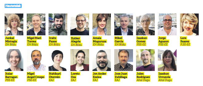 Pasaiako 17 zinegotzien artean aurpegi berri asko daude. EH Bilduk irabazi zituen atzoko udal hauteskundean, PSE-EE bigarren izan zelarik.