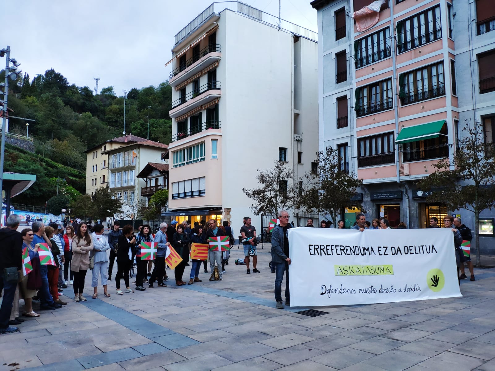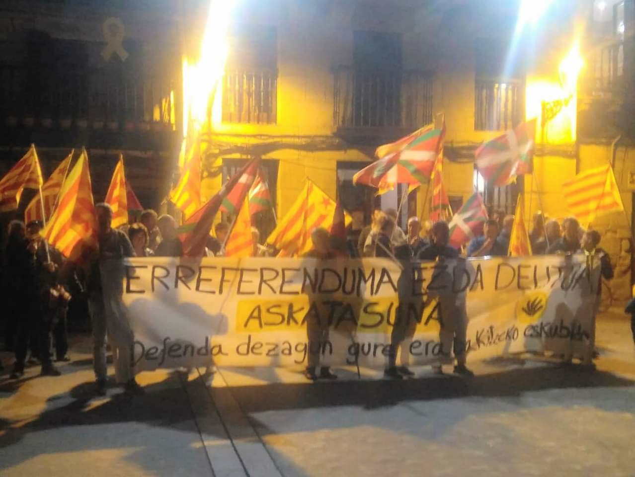 Gure eskuk deituta, hamarka herritarrek protesta zaratatsua egin zuten erreferenduma ez da delitua lelopean eta bederatzi buruzagien askatasuna exijitu zuten. Erabakitzeko eskubidearen kontrako eraso zuzena izan dela salatu zuten, eta buruzagiak milioika herritarren nahiari bide egiteagatik zigortu dituztela.